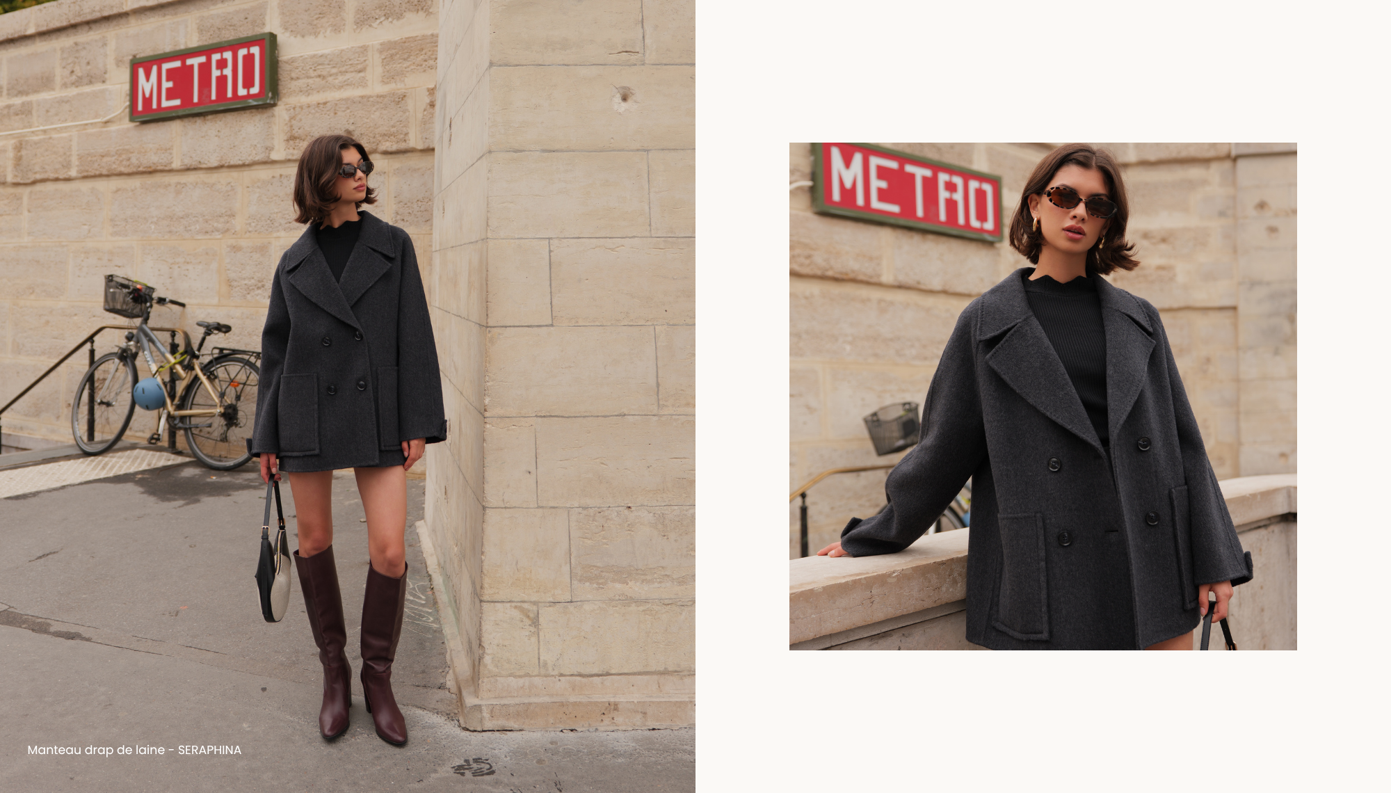 Mannequin femme portant le manteau droit en laine gris Escandelle – look chic et intemporel